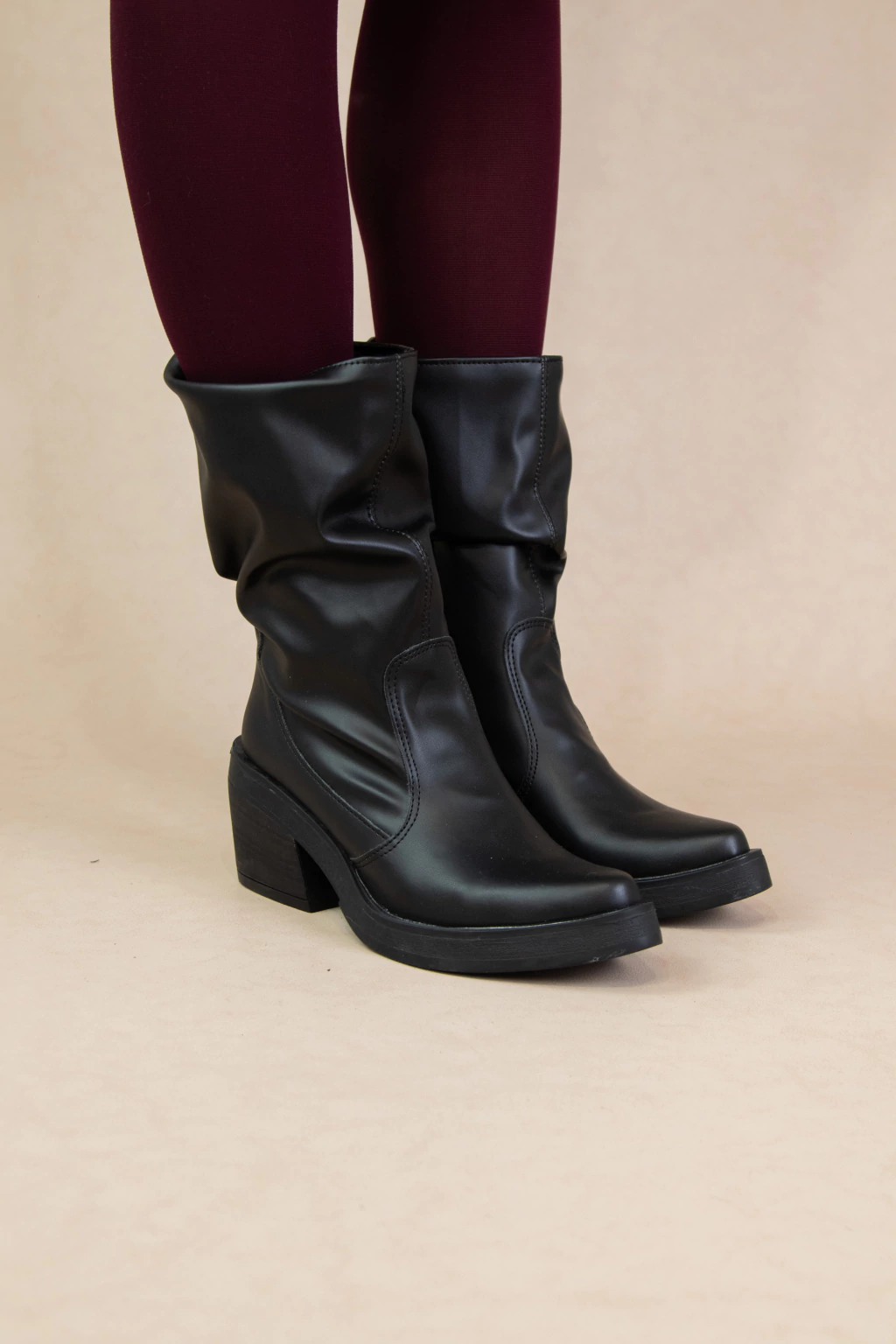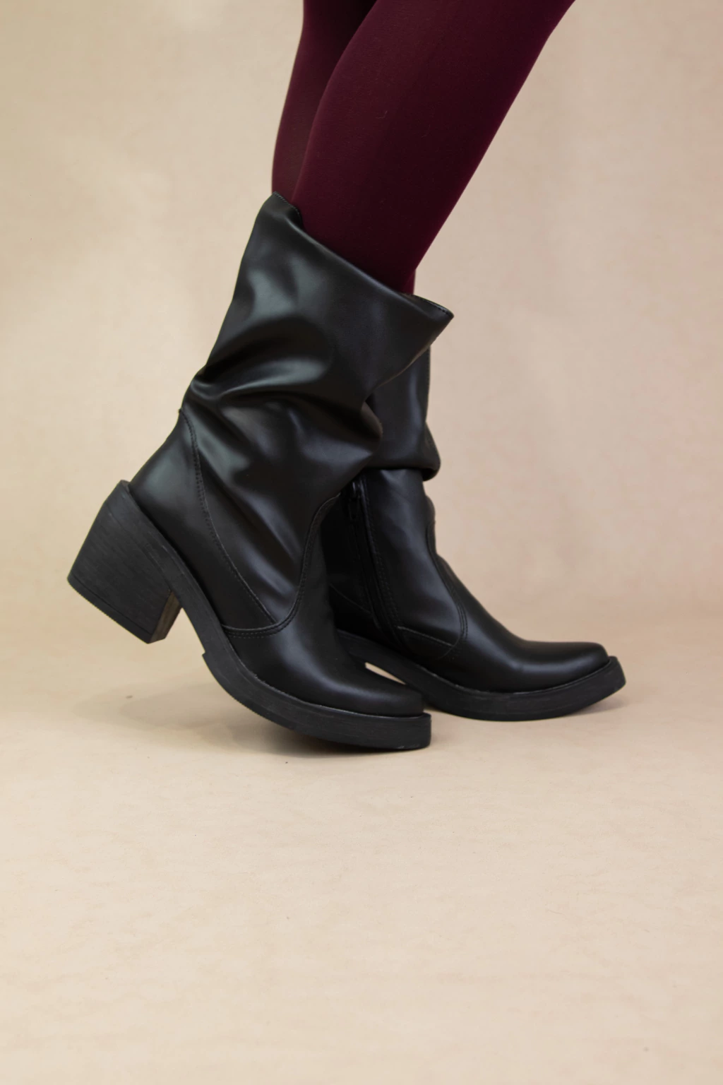 Botas Ladies con caña fruncida. Con cierre para mayor calce. Estan hechas en eco cuero con base de goma antideslizante de 5cm.