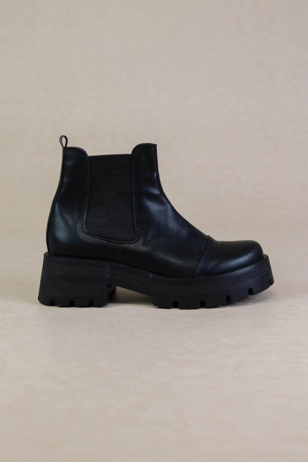 Botas hechas en eco cuero y elastico en ambos lados que facilita su acceso. Tiene una base de goma antideslizante con un taco bajo de 5cm. y una caña de 12cm.