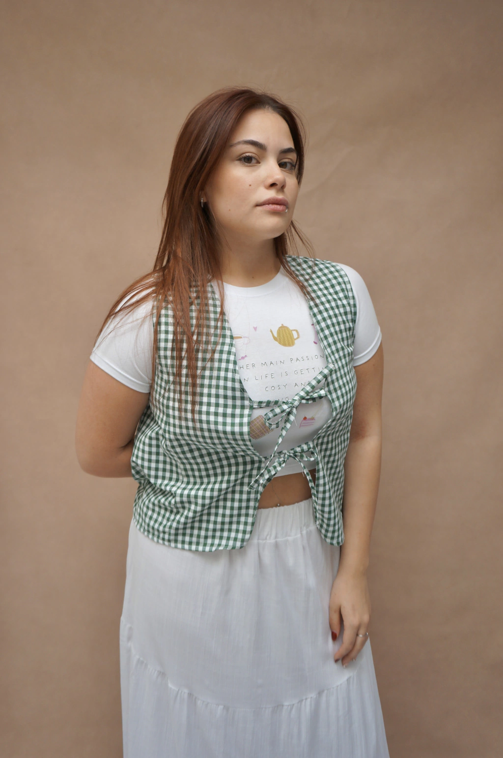 Chaleco de poplin cuadrille con tiras para atar en el delantero