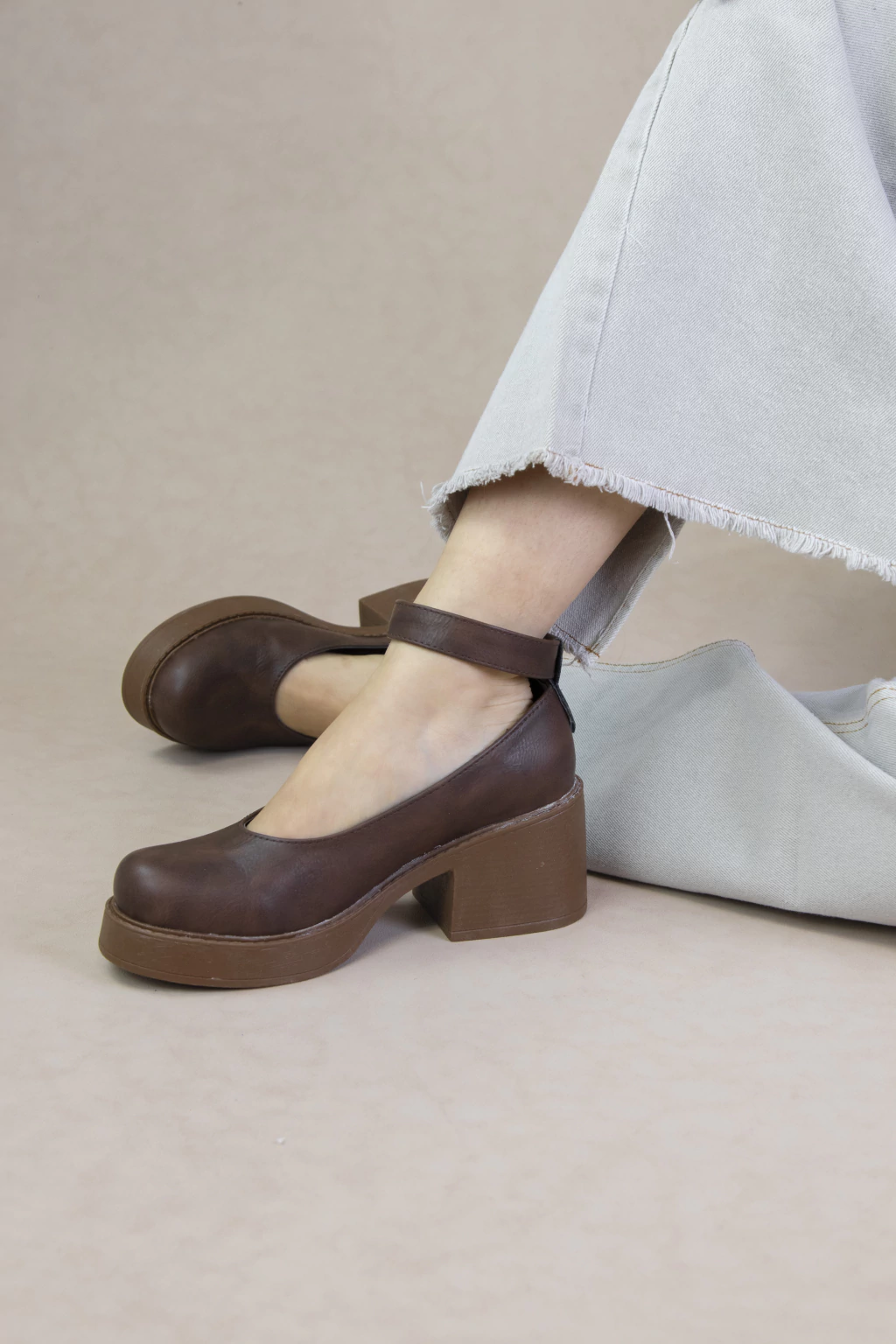 Guillerminas Lauryn. Base de goma antideslizante con un taco de 6,5 cm y punta redonda. Tiene una tira que agarra el tobillo con una hebilla. Tiene una horma cumplida por lo que recomendamos pedirte el talle que usas normalmente.
