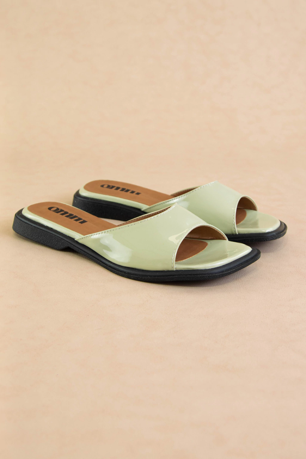 Sandalia Chloé. Hechas en ecocuero. Tiene una tira ancha de charol que cruzan parte del empeine. Base de goma antideslizante y taco bajo de 2 cm.