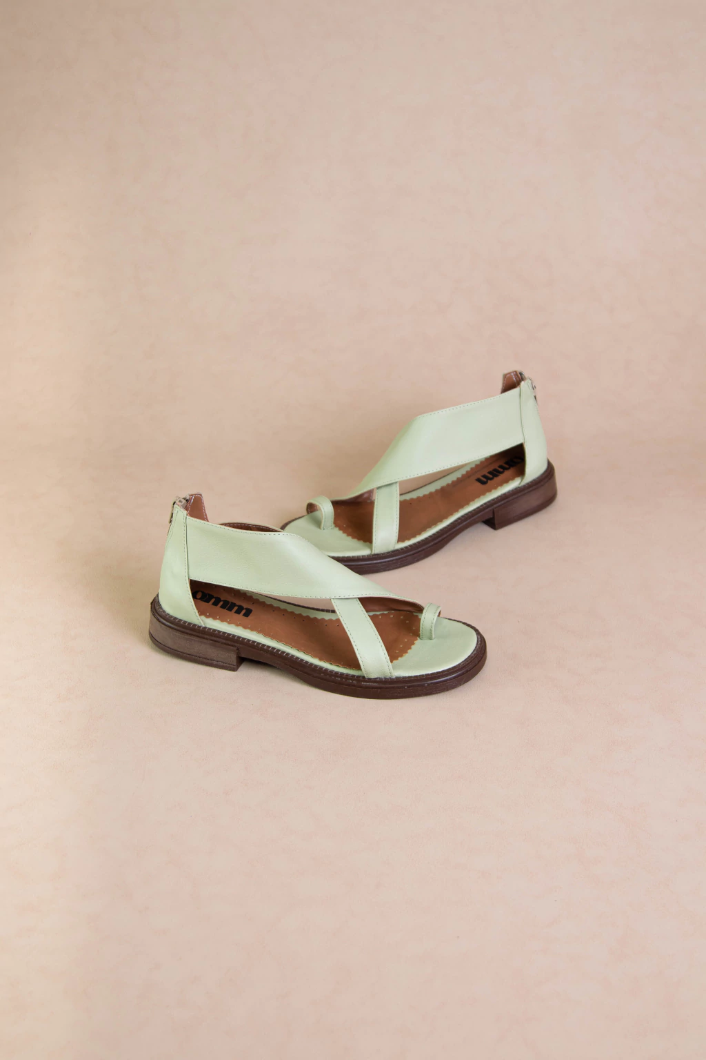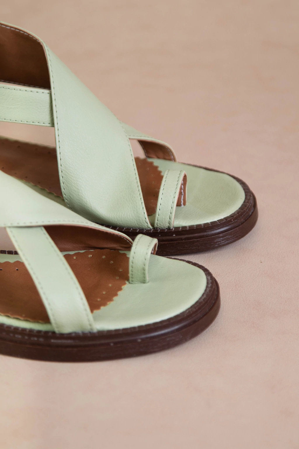 Suecos Noah. Hechas en ecocuero. Tiene 2 tiras (una ancha y otra mas angosta) que cruzan el empeine. Tiene cierre en el talón y una tira qué rodea el dedo gordo del pie. Base de goma antideslizante y taco bajo de 3 cm.