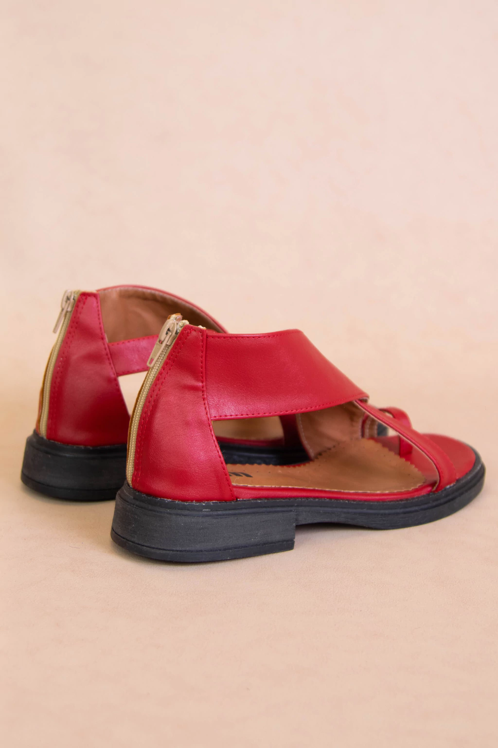 Suecos Noah. Hechas en ecocuero. Tiene 2 tiras (una ancha y otra mas angosta) que cruzan el empeine. Tiene cierre en el talón y una tira qué rodea el dedo gordo del pie. Base de goma antideslizante y taco bajo de 3 cm.