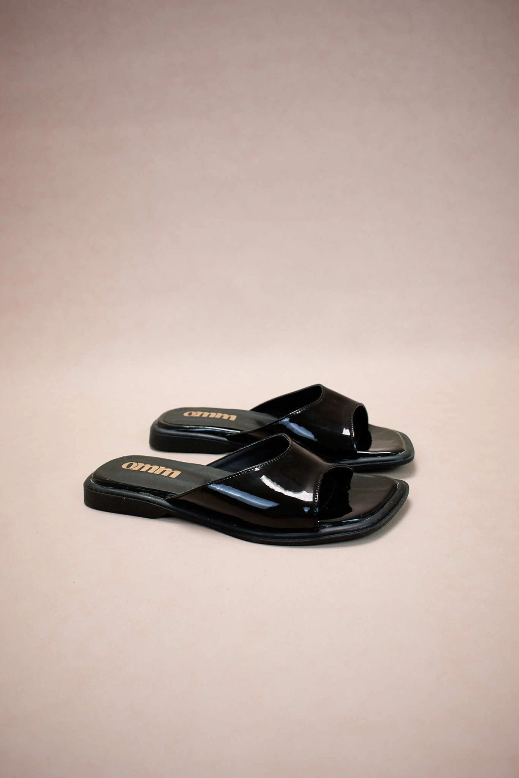 Suecos Chloé. Hechas en ecocuero. Tiene una tira ancha de charol que cruzan parte del empeine. Base de goma antideslizante y taco bajo de 2 cm.