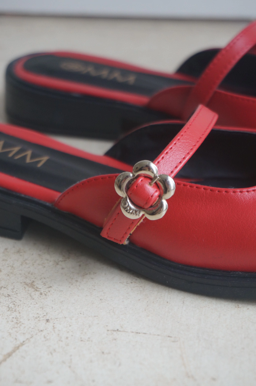Hechos en ecocuero. Tienen nuestra hebilla diseñada en forma de flor con el logo grabado. La base es de goma antideslizante con punta cuadrada y un taco bajo de 2,5cm🌸