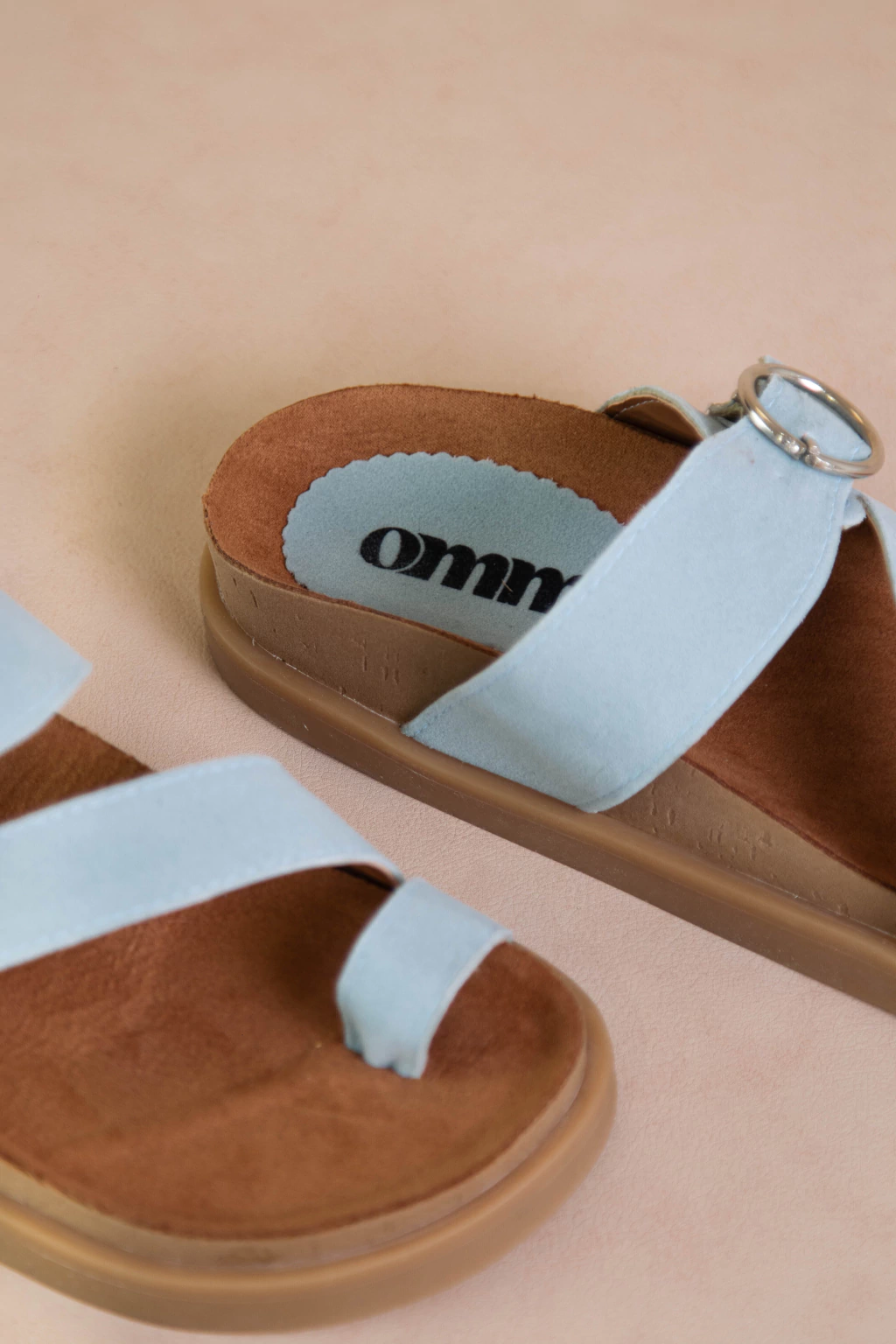 Suecos Grecia. Hechas en ecocuero. Tiene 2 tiras de gamuza que cruzan el empeine con hebilla regulable y una tira qué rodea el dedo gordo del pie. Base de goma antideslizante y taco bajo de 3 cm.