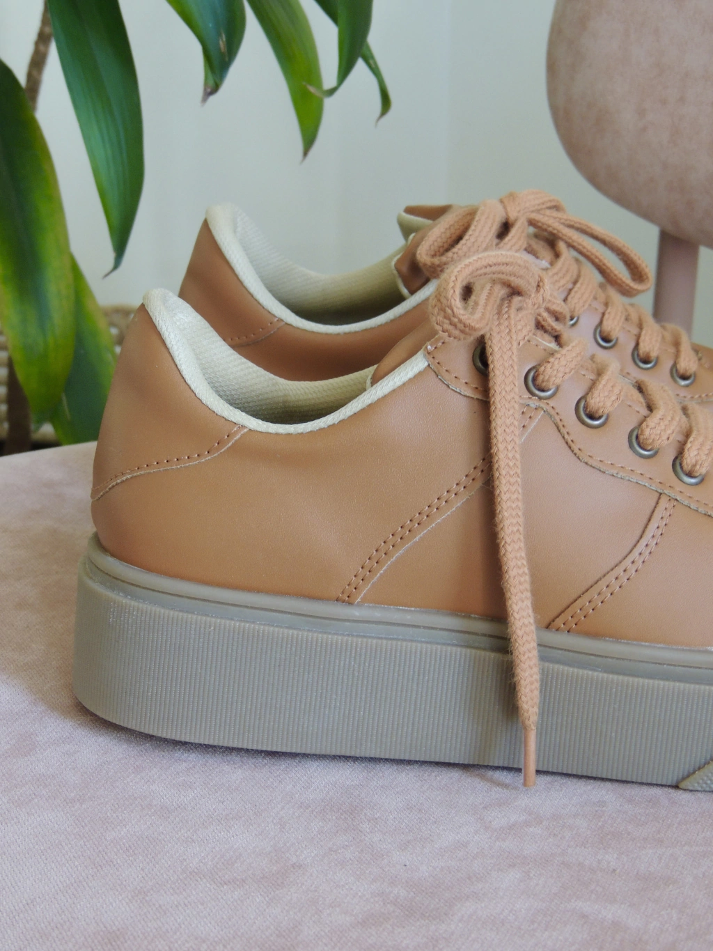 Hechas con amor cuidando todos los detalles, Producto Eco Friendly hecho en Eco Cuero, con cordones a tono, con base de goma super liviana antideslizante color camel de 4cm.